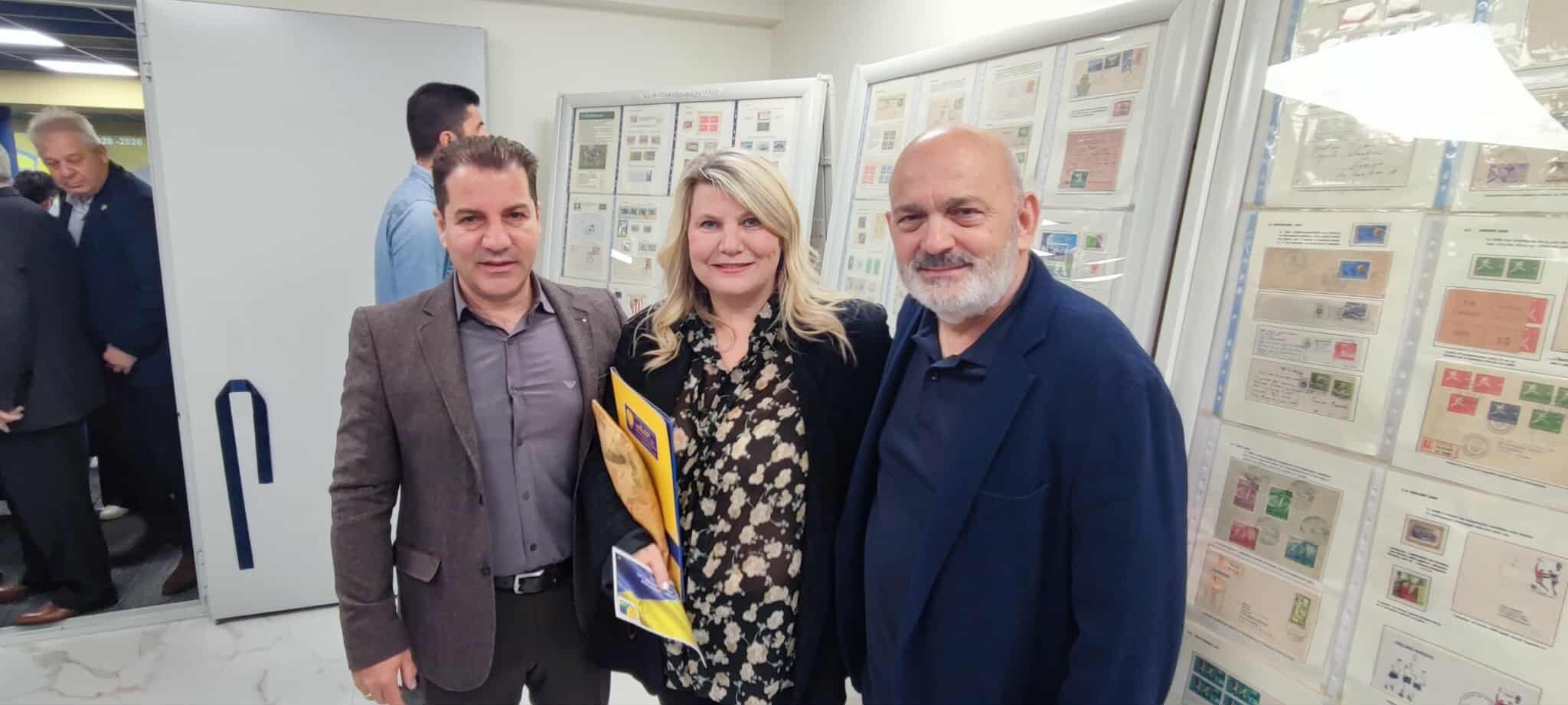 Παράλληλα, εγκαινιάστηκε η έκθεση γραμματοσήμων με θέμα τον Αθλητισμό, η οποία φιλοξενείται στην ίδια αίθουσα και προσελκύει το ενδιαφέρον μικρών και μεγάλων.