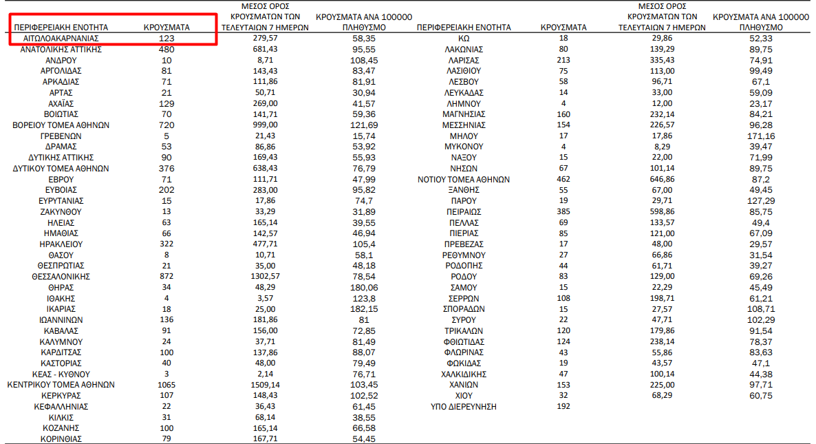 Ε.Ο.Δ.Υ.: Κατανομή ανακοινωθέντων εγχώριων κρουσμάτων: Από το σύνολο των 8.753 νέων κρουσμάτων του νέου ιού στη χώρα 2 είναι εισαγόμενα. Η κατανομή των 8.751 νέων εγχώριων κρουσμάτων ανά Περιφερειακή Ενότητα παρουσιάζεται στον κατωτέρω πίνακα: Continue Reading Προηγούμενο Αστακός: Ομιλία του Ν. Παπαναστάση για τις πολιτικές εξελίξεις και τις θέσεις του Κ.Κ.Ε.Επόμενο Ε.Ο.Δ.Υ.: Σε Αγρίνιο, Μεσολόγγι και Ναύπακτο οι διαγνωστικοί έλεγχοι της Δευτέρας Σχετικά Άρθρα Νέα Αγρίνιο: Ο νεαρός Άκης Καραχρήστος έχασε τη ζωή του στον Κόμβο Μεγάλης Χώρας 3 Νοεμβρίου 2024 Antenna-Star Νέα Τραγωδία στο Αγρίνιο: Κλινικά νεκρή η 17χρονη, αδερφή του 21χρονου που σκοτώθηκε στο τροχαίο 3 Νοεμβρίου 2024 Antenna-Star Νέα Αγρίνιο: Συνελήφθη ο 37χρονος για το θανατηφόρο τροχαίο στον Κόμβο της Μεγάλης Χώρας 3 Νοεμβρίου 2024 Antenna-Star