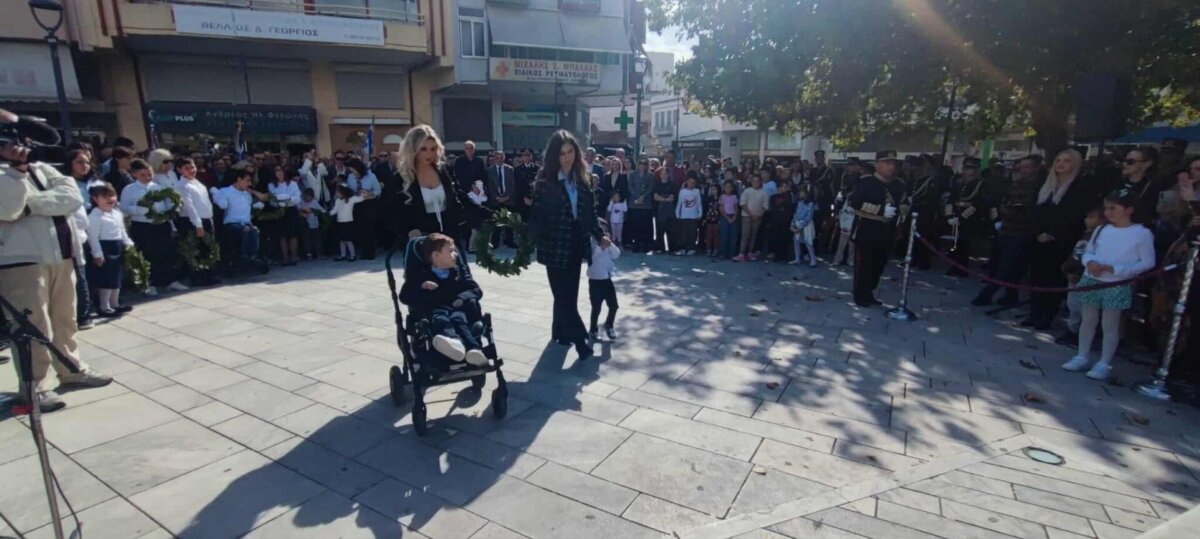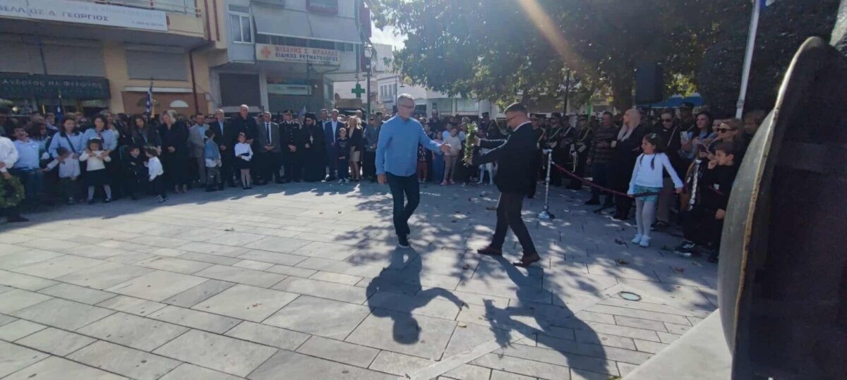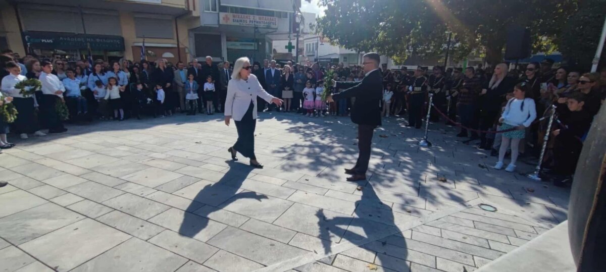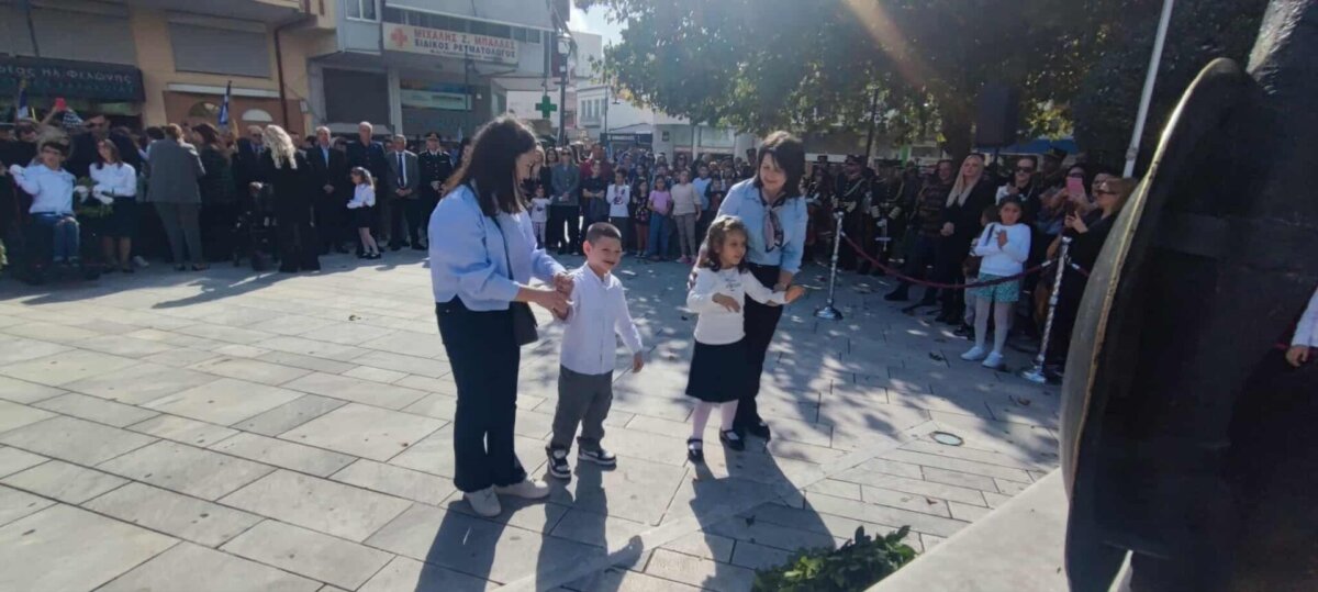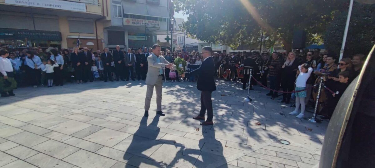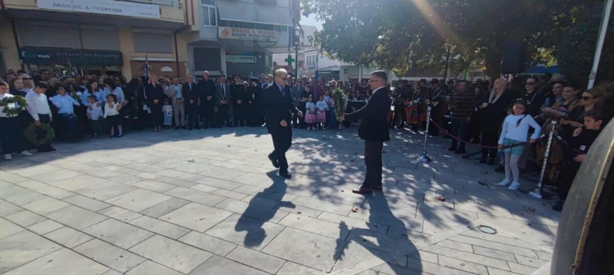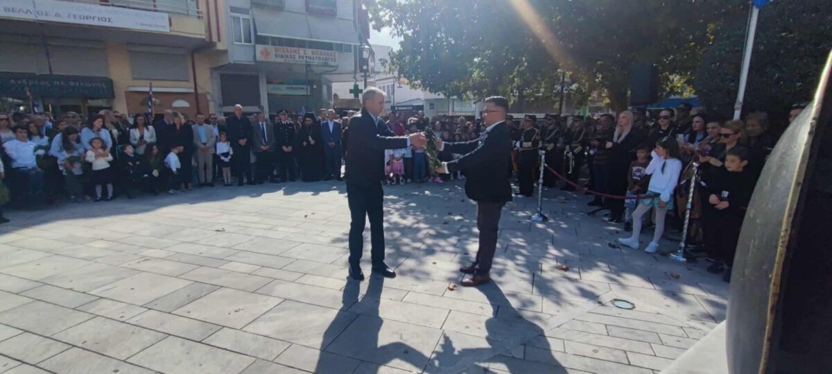 Ακολούθησε κατάθεση στεφάνων από Μαθητές όλων των βαθμίδων, Φοιτητές των Πανεπιστημιακών Τμημάτων της πόλης, Αυτοδιοικητικούς, και Εκπροσώπους Φορέων και Συλλόγων στο Μνημείο Πεσόντων.
