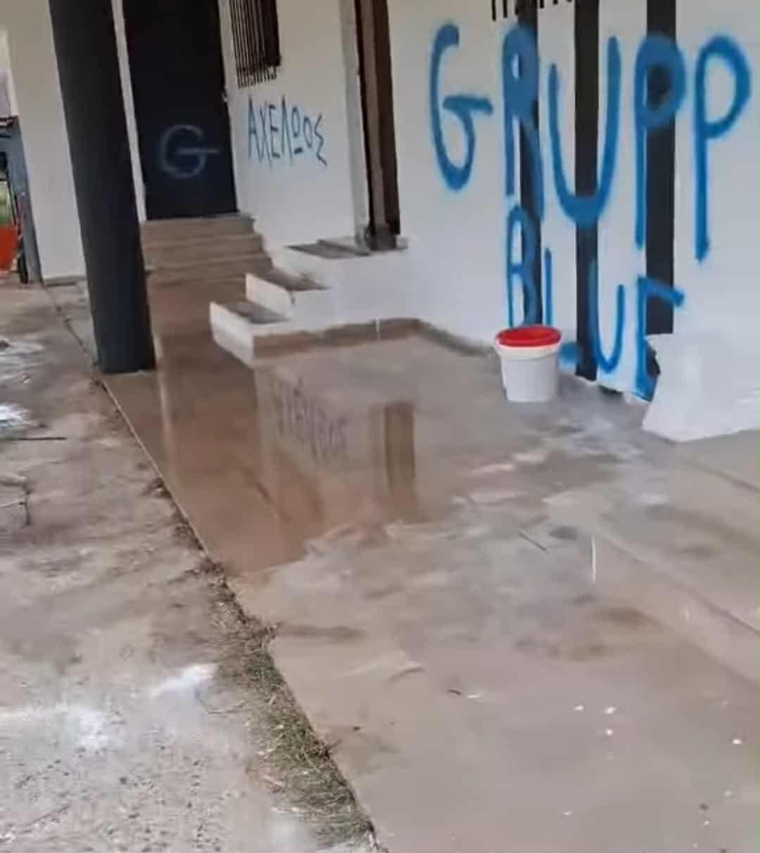 «Με μεγάλη λύπη ενημερωθήκαμε σήμερα για την απαράδεκτη ενέργεια που σημειώθηκε στο Γήπεδο Καλυβίων όπου βάφτηκαν τα αποδυτήρια του Τοπικού Συλλόγου.