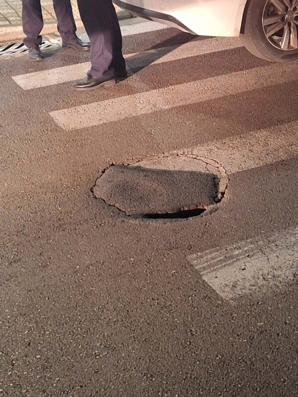 Στο σημείο έχει ανοίξει εμφανής τρύπα στο οδόστρωμα, με αποτέλεσμα οι οδηγοί να κινούνται με ιδιαίτερη προσοχή.