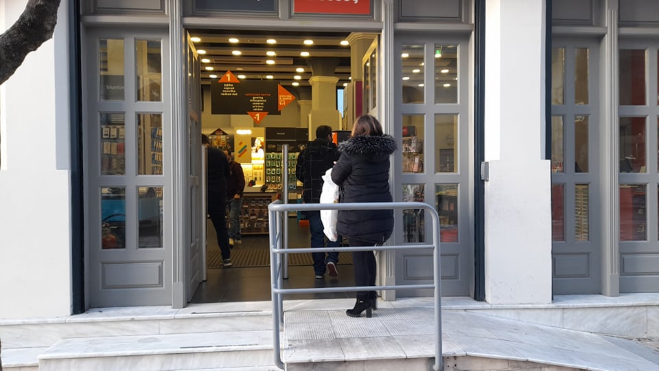 Κάποια καταστήματα της πόλης δεν εξυπηρετούν πολλούς πελάτες ταυτόχρονα, ανάλογα με το εμβαδόν τους, ενώ οι καταναλωτές συμμορφώνονται με τις υποδείξεις των καταστηματαρχών.