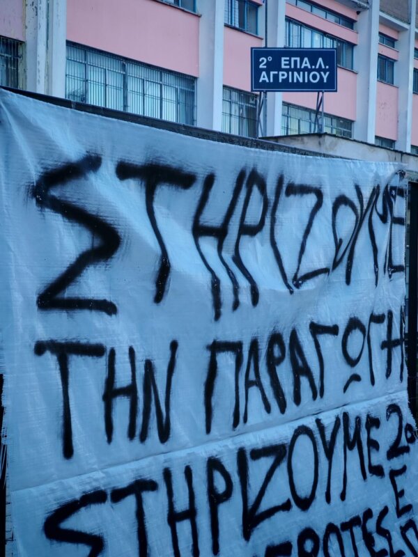 Στο 2ο ΕΠΑ.Λ. οι μαθητές τοποθέτησαν πανό στην κεντρική πόρτα του σχολικού συγκροτήματος στο οποίο αναφέραν ό,τι στηρίζουν τους αγρότες ενώ έβαλαν φωτιά σε σκουπίδια (εκτός κάδου).