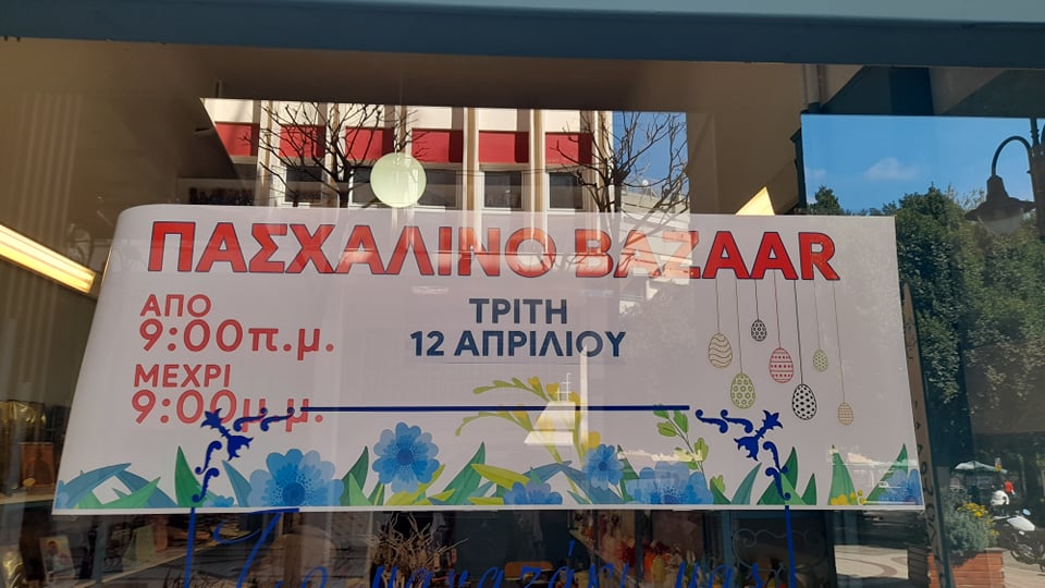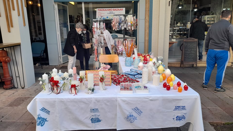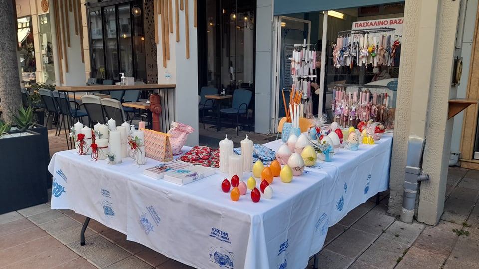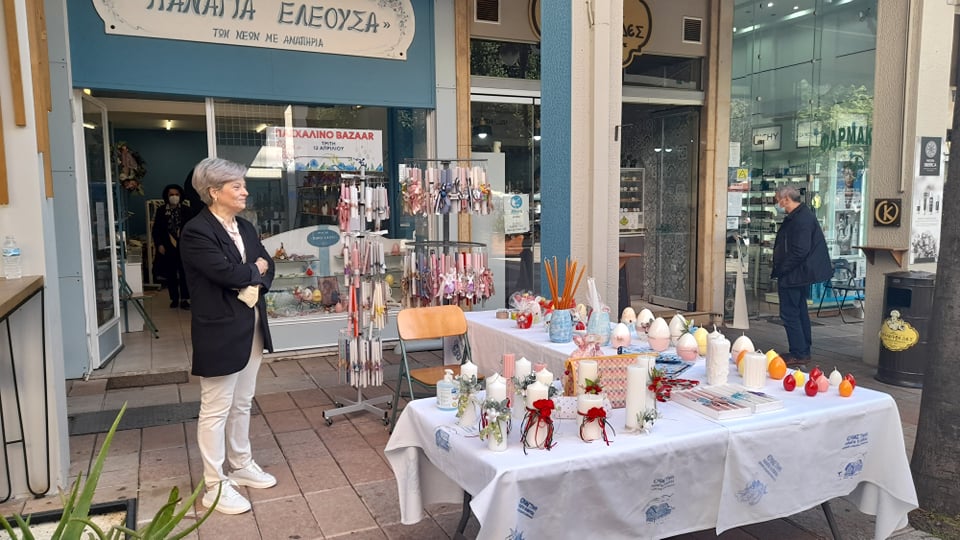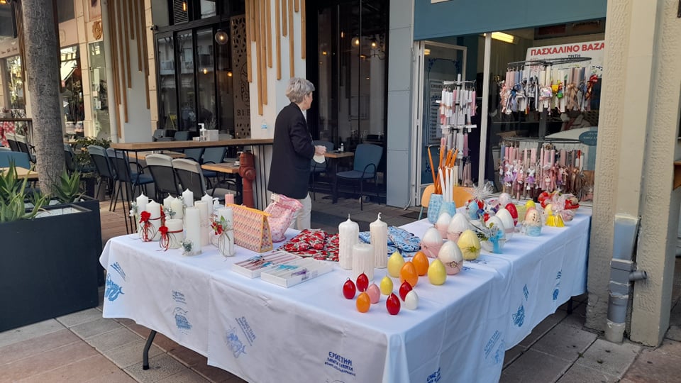 - Στο Bazaar εκτίθενται πασχαλινά έργα – χειροτεχνήματα των εκπαιδευόμενων νέων με νοητική υστέρηση και συνοδές αναπηρίες, που διαμένουν στις Στέγες Υποστηριζόμενης Διαβίωσης – Οικοτροφεία του Εργαστηρίου «Παναγία Ελεούσα» στο Αγρίνιο και στο Μεσολόγγι.