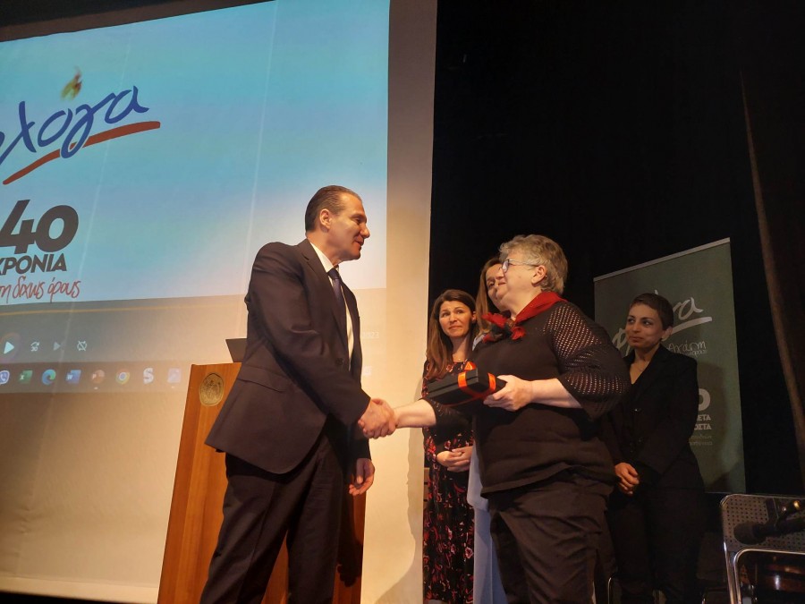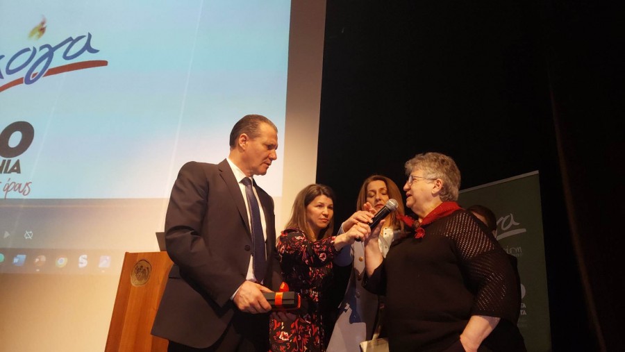 Στην κατάμεστη αίθουσα του ΔΗ.ΠΕ.ΘΕ. Αγρινίου και στο πλαίσιο της εκδήλωσης «Κοντά στο παιδί με Καρκίνο» πραγματοποιήθηκε, πριν από λίγη ώρα, η βράβευση του Προέδρου του Αγροτικού Συνεταιρισμού «Η Ένωση» Αγρινίου κ. Θωμά Κουτσουπιά από την Πρόεδρο του Συλλόγου «Φλόγα» κ. Μαρία Τρυφωνίδη για την αθόρυβη και ανιδιοτελή προσφορά του καθώς χάρις στο προσωπικό ενδιαφέρον το παράρτημα της «Φλόγας» Αγρινίου (Σύλλογος γονιών παιδιών με νεοπλασματική ασθένεια) αποκτά τον δικό της χώρο, στο Αγρίνιο, για να στεγάσει την αγάπη της προς τα παιδιά, την προσφορά και την αλληλεγγύη της.