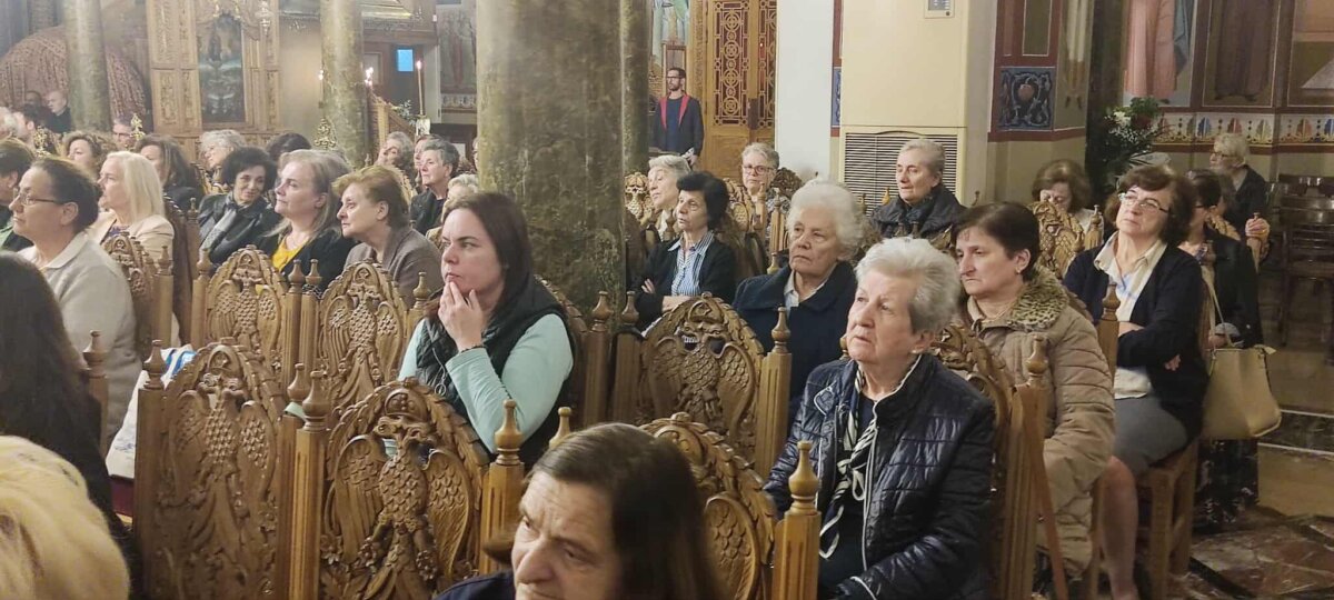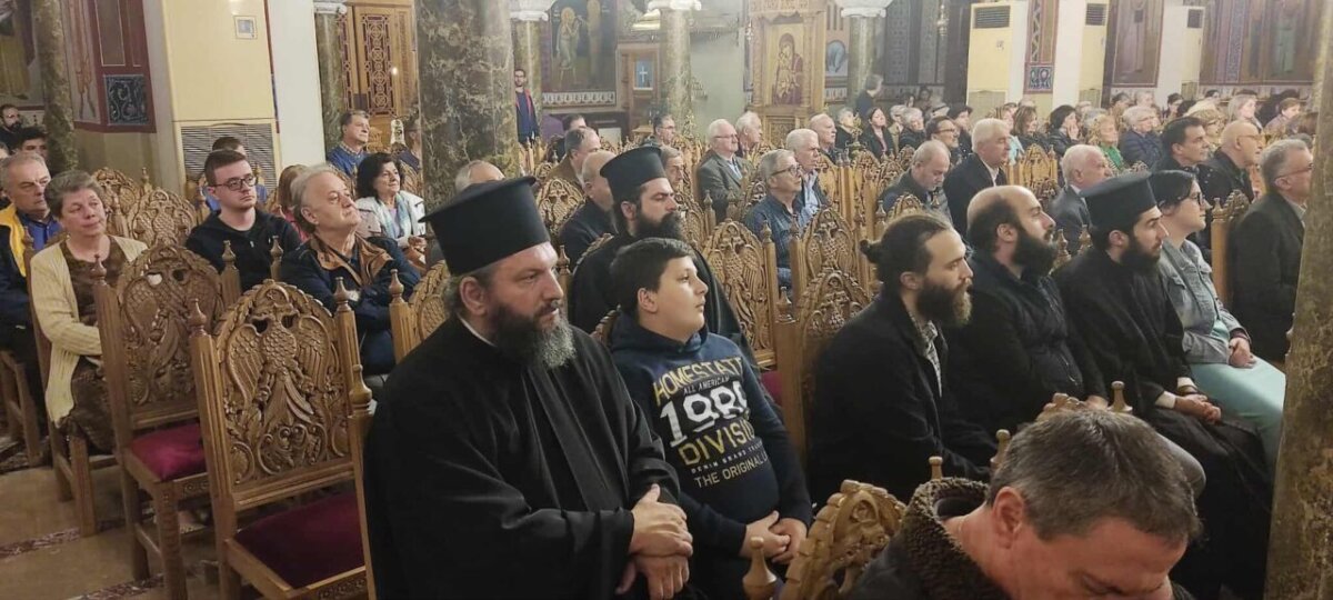 Πριν από την ομιλία, τελέστηκε με ευλάβεια η Ακολουθία του Παρακλητικού Κανόνα του Αγίου Σωφρονίου, χοροστατούντος του Σεβασμιότατου Μητροπολίτου Ναυπάκτου κ.κ. Ιεροθέου.