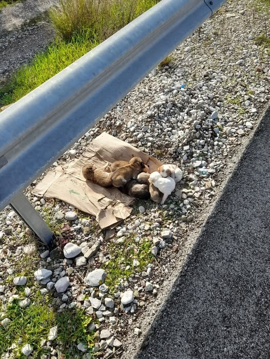 Τα σκυλάκια αφέθηκαν μέσα στην παγωνιά, χωρίς τροφή, πάνω σε ένα χαρτοκούτι σε απόσταση αναπνοής από το σημείο οπού διέρχονται αυτοκίνητα, με άμεσο κίνδυνο για τη ζωή τους.