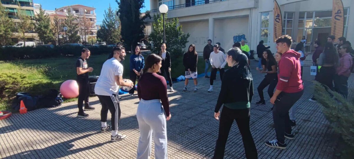 Το πρωί της Πέμπτης, 9 Οκτωβρίου 2025, ο πανεπιστημιακός χώρος «ζωντάνεψε» μέσα από ένα διαδραστικό πρόγραμμα που συνδύαζε παιδαγωγικό παιχνίδι, αθλητική δράση και δημιουργική κίνηση.