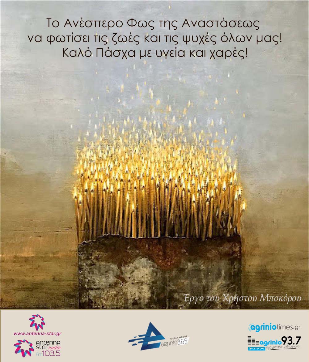 Οι εργαζόμενοι και οι συνεργάτες των μέσων του «Agrinio365» Media Group (Antenna Star 103.5 – Antenna-Star.gr – Agrinio 365 TV – Agrinio937 fm – AgrinioTimes.gr – AgrinioTimesTV) σας εύχονται Καλή Πάσχα με υγεία και χαρές!