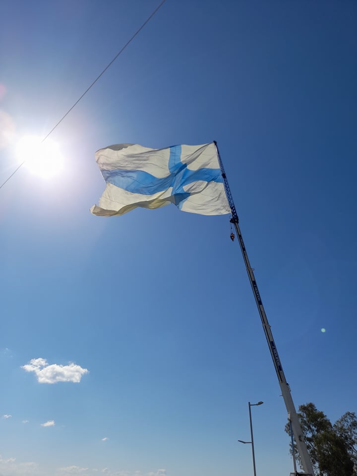 Καταλυτική ήταν και η βοήθεια του κ. Κουφού που διέθεσε δωρεάν τον γερανό της επιχείρησής του για να υψωθεί η σημαία.
