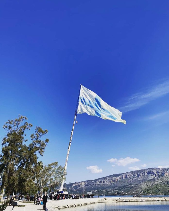 Την σημαία με τον γαλάζιο σταυρό του Αγίου Ανδρέα, αντίγραφο αυτής που χρησιμοποιούσαν οι Κολοκοτρωναίοι από τα τέλη του 18ου αιώνα, ύψωσε μια ομάδα εθελοντών στο μνημείο του Λιακατά στο Αιτωλικό.