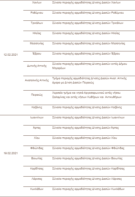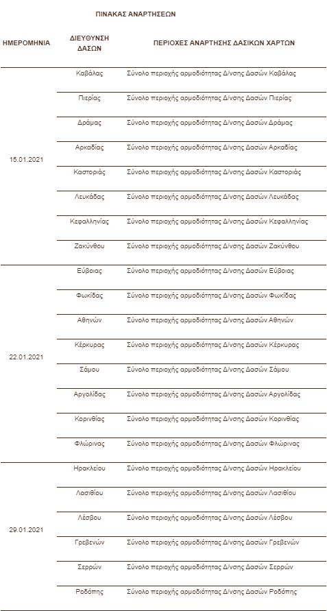 Ήδη, έχει καταρτιστεί και έχει αποσταλεί σε όλες τις αποκεντρωμένες Δασικές Υπηρεσίες αλλά και τους εμπλεκόμενους φορείς (Ελληνικό Κτηματολόγιο, Ο.Π.Ε.Κ.Ε.Π.Ε., Υπουργείο Οικονομικών) εβδομαδιαίο πρόγραμμα αναρτήσεων, από τα μέσα Ιανουαρίου έως το τέλος Φεβρουαρίου 2021.