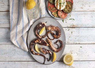Συστατικά Για το χταπόδι 1 1/2 κιλό χταπόδι, ολόκληρο 3 κρεμμύδια 3 κ.σ. ξίδι, από κόκκινο κρασί 1 κ.σ. κόκκους πιπεριού 50 γρ. ελαιόλαδο Για τη…