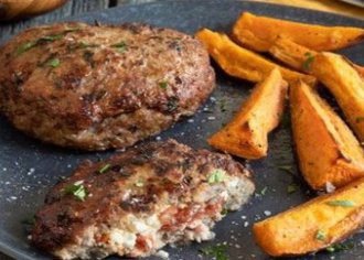 Συστατικά Για τα μπιφτέκια 1 κρεμμύδι 1 σκ. σκόρδο 4 κ.γ. ελαιόλαδο 500 γρ. κιμά μοσχαρίσιο 500 γρ. κιμά χοιρινό 5 κλ. θυμάρι, ψιλοκομμένο 10 φύλλα δυόσμου, ψιλοκομμένα 1 αβγό, μεσαίο…