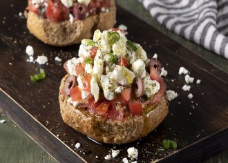 Συστατικά 1 κριθαροκουλούρα, κομμένη στη μέση 1 ντομάτα 1 κ.γ. ξίδι, από λευκό κρασί 1 κ.γ. ζάχαρη κρυσταλλική 1 πρέζα αλάτι πιπέρι 1 κ.σ. βασιλικό, ψιλοκομμένο θυμάρι, φρέσκο 1/2 φρέσκο…