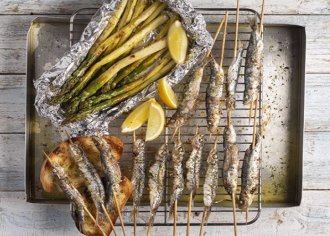 Συστατικα Για τις σαρδέλες 500 γρ. σαρδέλες 2 σκ. σκόρδο 1 κ.σ. δεντρολίβανο 2 κ.σ. ελαιόλαδο, + έξτρα για το λάδωμα της σχάρας 1 κ.γ. μπούκοβο…