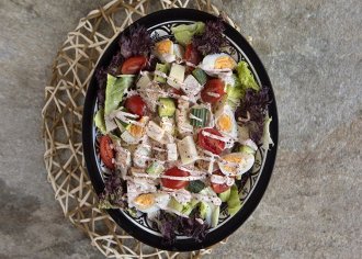 Συστατικά Για το dressing 160 γρ. γιαούρτι στραγγιστό light 1 κ.γ. πάπρικα 2 κ.σ. κέτσαπ 1 κ.σ. ξίδι, λευκό αλάτι πιπέρι 1 κ.σ. μέλι Για τη…