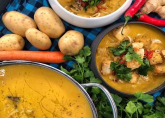 Υλικά Για τη σούπα 750 γρ. πατάτες, κομμένες σε μεσαίους κύβους 1 καρότο, χοντροκομμένο 180…