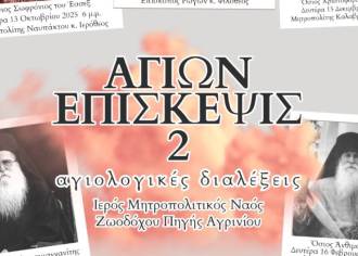 Στο Αγρίνιο επιστρέφει το «Αγίων Επίσκεψις 2» – Αγιολογικές Διαλέξεις στον Ιερό Μητροπολιτικό Ναό Ζωοδόχου…