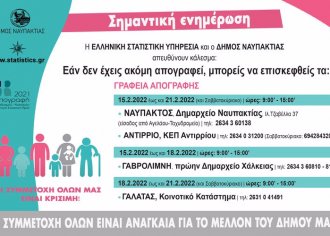 Έως τις 21/2 Γραφεία Απογραφής σε Ναύπακτο, Αντίρριο, Γαβρολίμνη, Γαλατά για όσους δεν έχουν απογραφεί Ο…