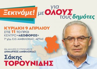 Υποψήφιος δήμαρχος Αμφιλοχίας ο Σάκης Τορουνίδης – Επίσημη ανακοίνωση την Κυριακή 9 Απριλίου σε μεγάλη…