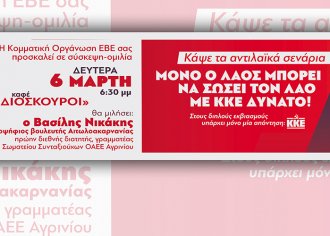 Σε σύσκεψη της Κομματική Οργάνωσης ΕΒΕ στο Αγρίνιο, τη Δευτέρα 6 Μάρτη, στις 6:30 μμ,…