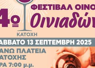 Στις Οινιάδες Ι.Π. Μεσολογγίου θα πραγματοποιηθεί το Σάββατο, 13 Σεπτεμβρίου το 4ο Φεστιβάλ Οίνου –…