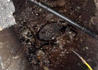 Μια βαθιά τρύπα άνοιξε στο οδόστρωμα στην περιοχή της Χαραυγής στο Καινούργιο στον κάθετο δρόμο…