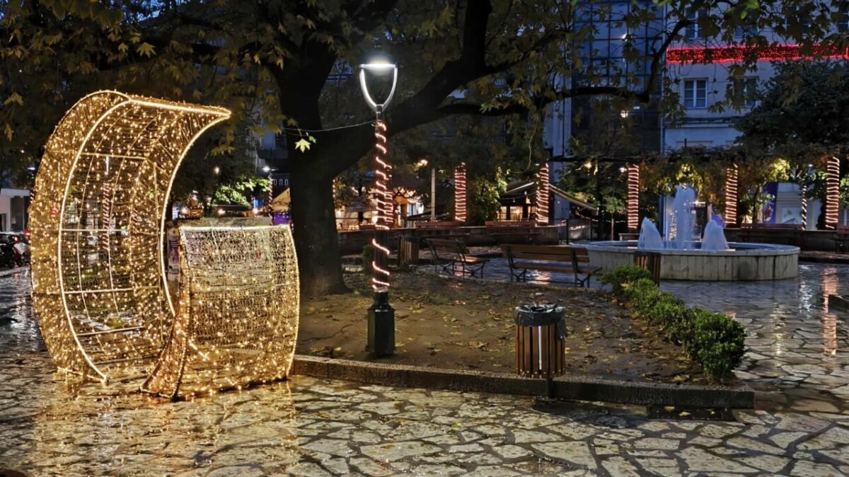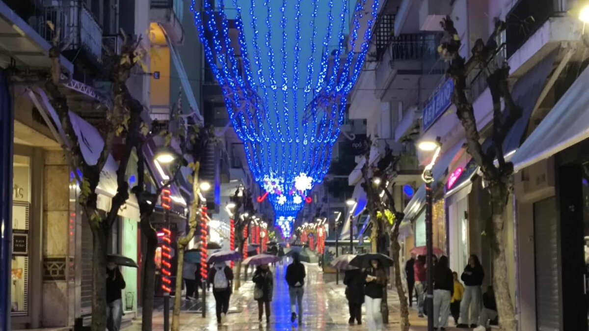 Γιορτινή η ατμόσφαιρα στο κέντρο του Αγρινίου μετά την εντυπωσιακή φωταγώγηση του χριστουγεννιάτικου στολισμού της πόλης, το απόγευμα της Παρασκευής, 29 Νοεμβρίου 2025.