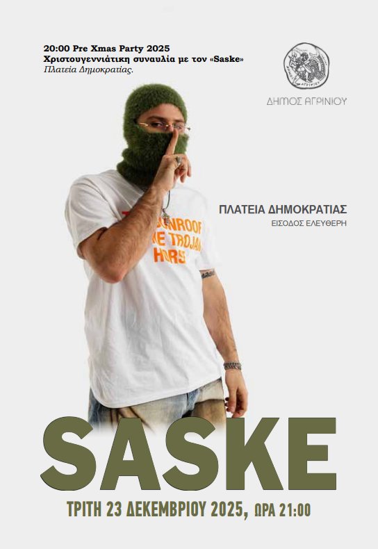 Πλησιάζουν τα Χριστούγεννα του 2025 και όλοι μετρούν αντίστροφα καθώς στις 23 Δεκεμβρίου ο Αγρινιώτης Saske τραγουδά live στην Πλατεία Δημοκρατίας, μία ανατρεπτική επιλογή.