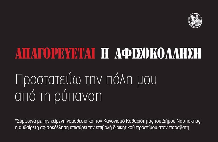Ο Δήμος Ναυπακτίας και οι αρμόδιες υπηρεσίες ζητούν τη συνδρομή των πολιτών στην αντιμετώπιση του φαινομένου της εκτεταμένης αφισοκόλλησης που παρατηρείται. Ιδιαίτερα στην Ναύπακτο, η οπτική ρύπανση που καταγράφεται στους κοινόχρηστους χώρους υποβαθμίζει την όψη της πόλης, την καθημερινότητα κατοίκων και επισκεπτών και σε κάθε περίπτωση επιβαρύνει σημαντικά το περιβάλλον.