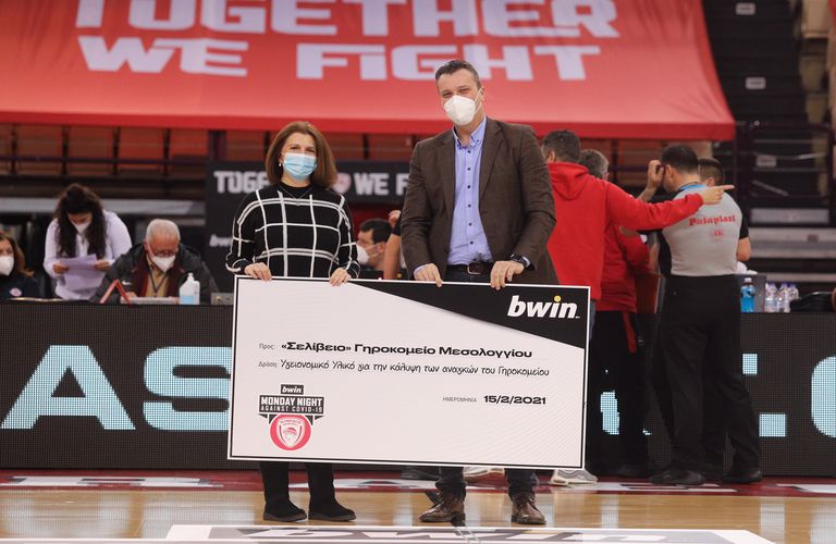 Ο Γενικός Διευθυντής της Κ.Α.Ε. Ολυμπιακός, Νίκος Λεπενιώτης, παρέδωσε στην Θεοδώρα Κουτσαγγέλη, Διευθύντρια του Σελίβειου Γηροκομείου Μεσολογγίου, υγειονομικό υλικό για την κάλυψη των αναγκών του Γηροκομείου.