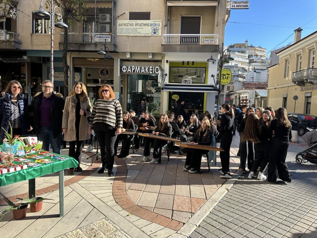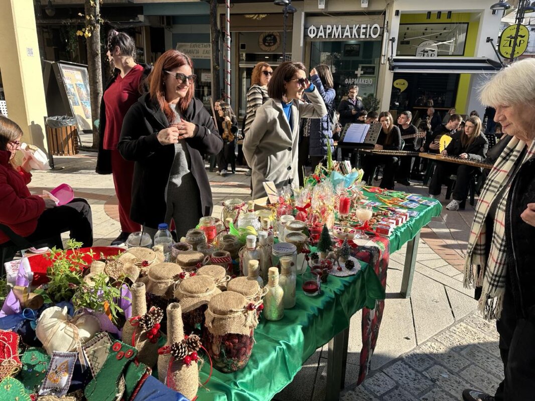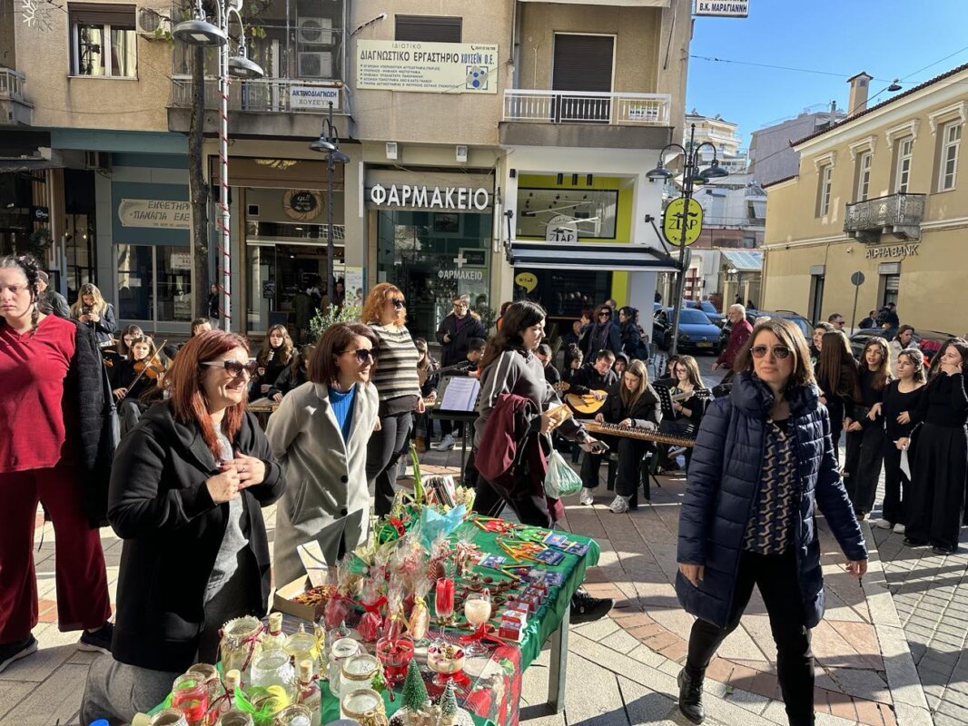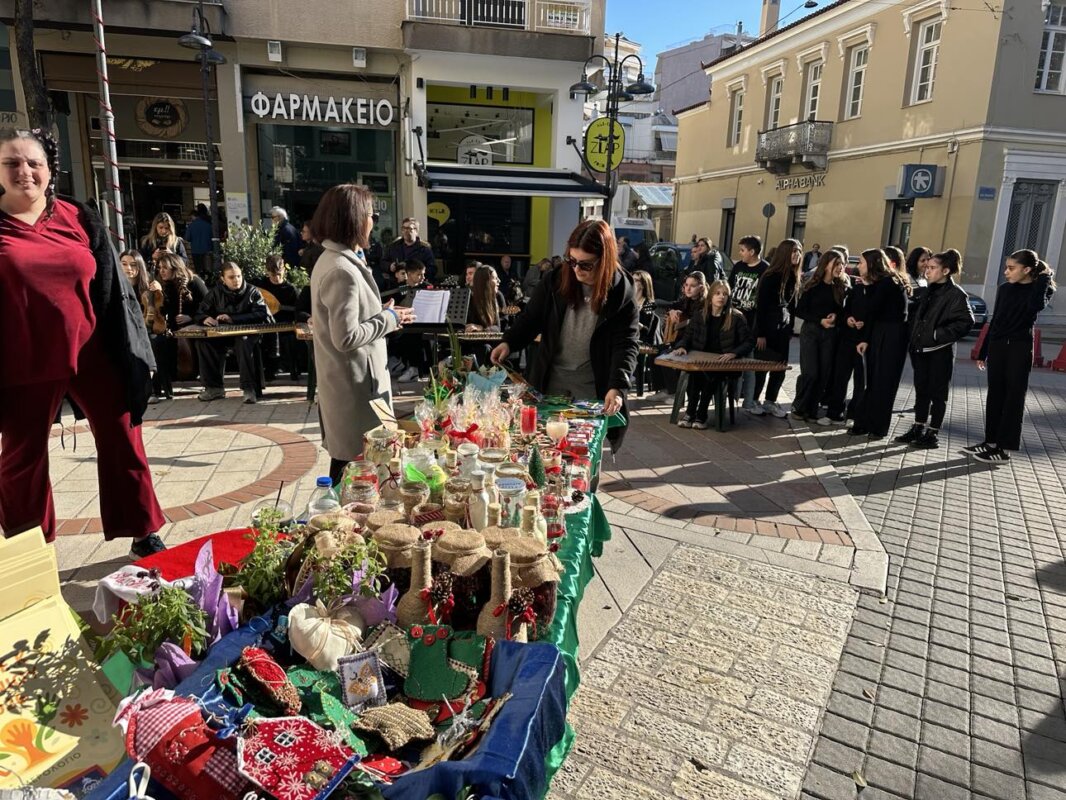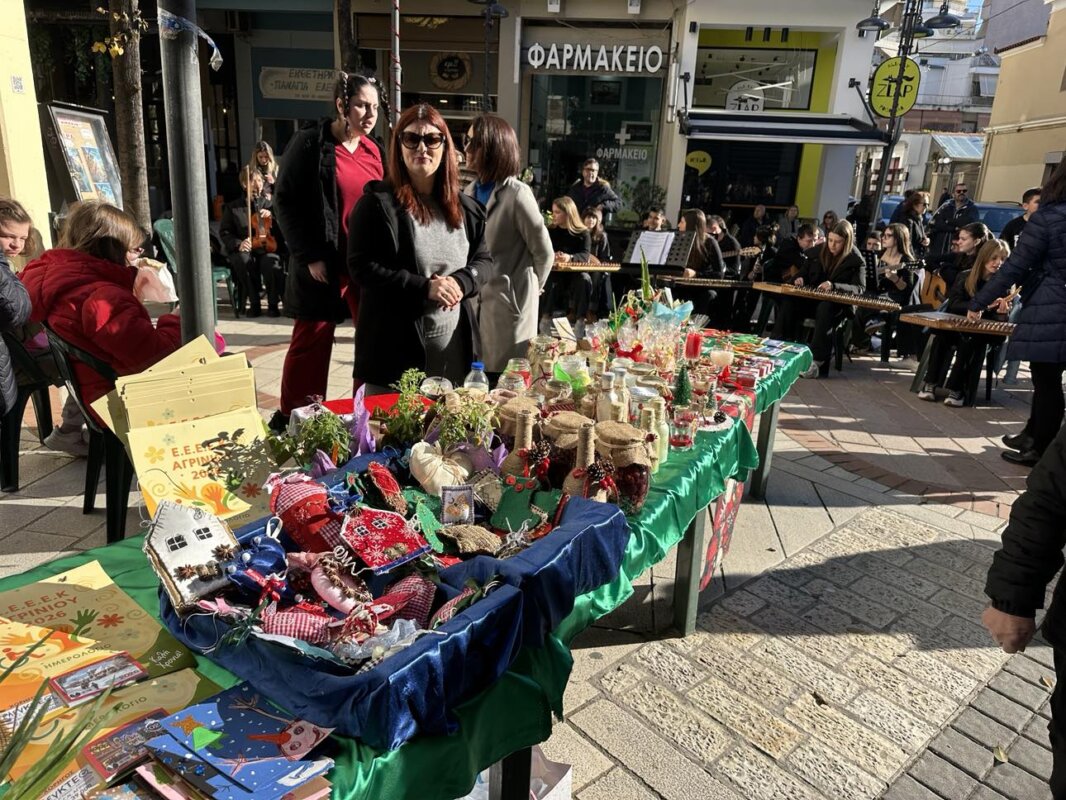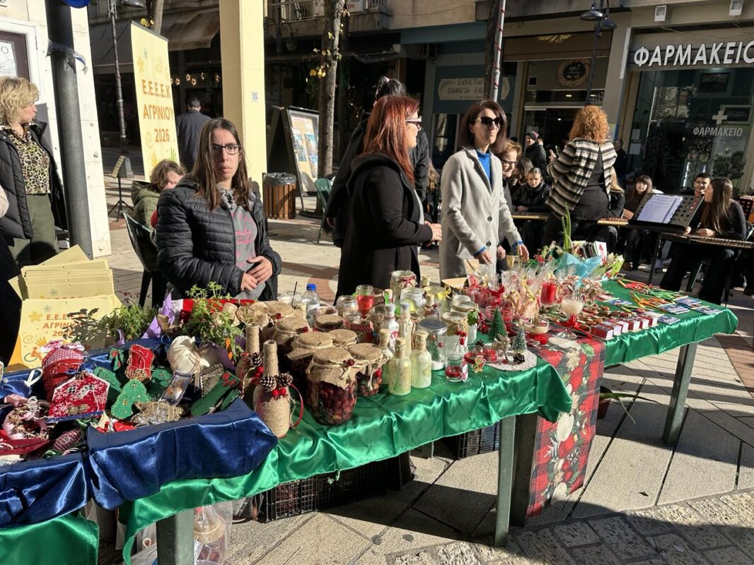 Το Ε.Ε.Ε.Ε.Κ. Αγρινίου σε συνεργασία με το Μουσικό Σχολείο παρουσίασαν εορταστικές μελωδίες στον Δήμαρχο ενώ λειτουργεί και διήμερο Bazaar κάτω από το Δημαρχείο.