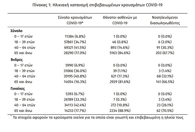 Οι νέοι θάνατοι ασθενών με COVID-19 είναι 26, ενώ από την έναρξη της επιδημίας έχουν καταγραφεί συνολικά 6.103 θάνατοι. Η διάμεση ηλικία των ασθενών που απεβίωσαν είναι 79 έτη.
