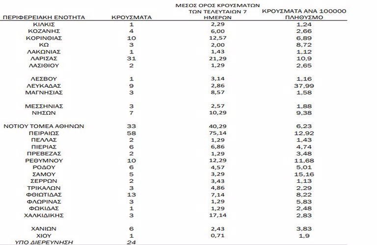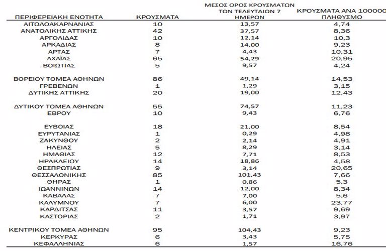 - Η κατανομή των 867 νέων εγχώριων κρουσμάτων ανά Περιφερειακή Ενότητα παρουσιάζεται στον κατωτέρω πίνακα.