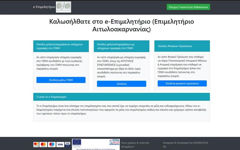 Ο Εμποροβιομηχανικός Σύλλογος Μεσολογγίου ενημερώνει τις επιχειρήσεις – μέλη του ότι τέθηκε σε λειτουργία το ηλεκτρονικό σύστημα e-Επιμελητήριο για την άμεση και ασφαλή εξυπηρέτηση των μελών τού Επιμελητηρίου Αιτωλοακαρνανίας στις ηλεκτρονικές υπηρεσίες.