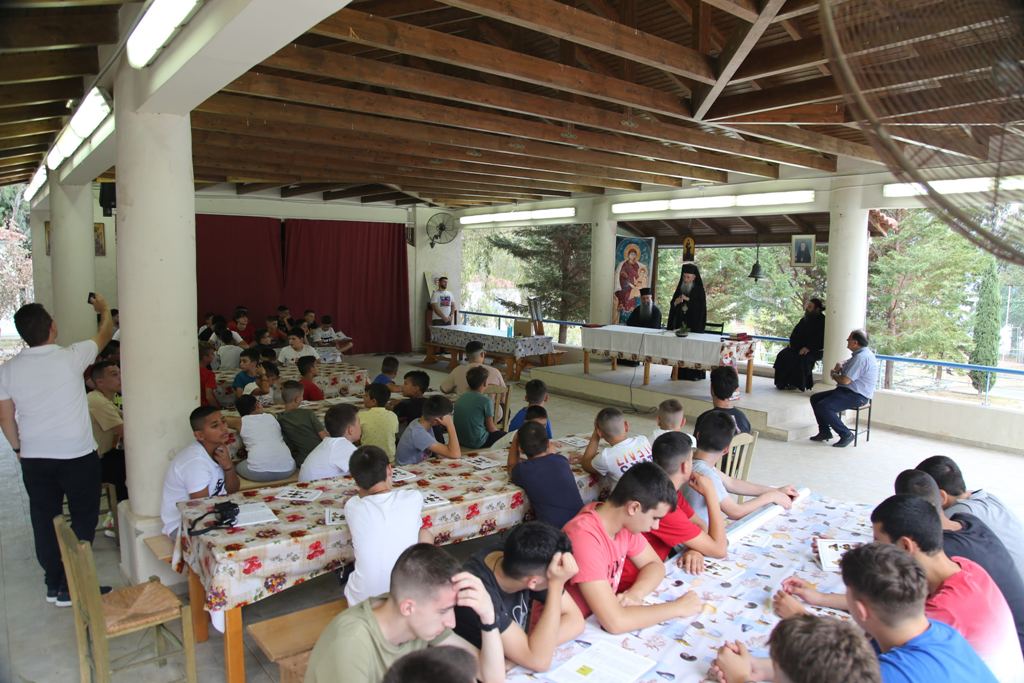 Αρχικά μίλησε για την μεγάλη αξία και προσφορά των εκκλησιαστικών κατασκηνώσεων. Η κατασκήνωση βοηθά τα παιδιά να αποκτήσουν μια κοινωνικοποίηση, να νοιώσουν τον άλλον ως αδερφό τους και όχι να ζει ο καθένας μόνος του, διότι ζουν όλοι μαζί σαν σε μια κοινωνία, σε μια ευρύτερη οικογένεια. Επίσης η κατασκήνωση δίνει την δυνατότητα στα παιδιά να γνωρίσουν την εκκλησιαστική ζωή, με την προσευχή, με την Θεία Λειτουργία, με τα αγιογραφικά αναγνώσματα. Αυτή είναι η διαφορά μεταξύ των κατασκηνώσεων που λειτουργούν άλλοι οργανισμοί και των κατασκηνώσεων που λειτουργεί η Εκκλησία.