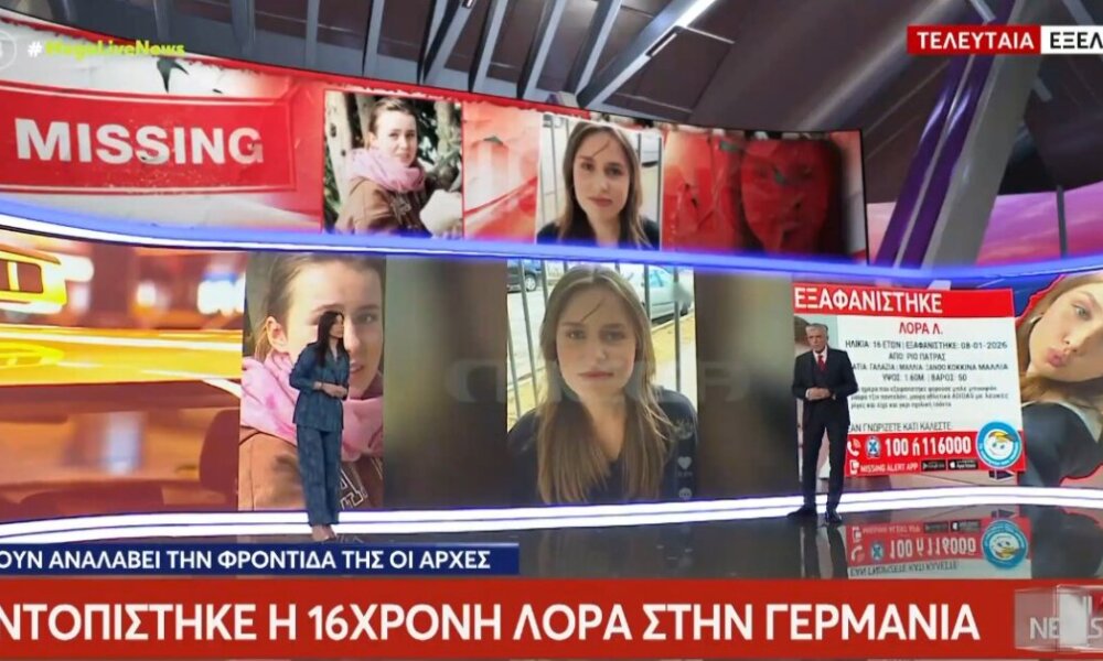 Σύμφωνα με πληροφορίες, οι ελληνικές αστυνομικές αρχές οι οποίες ενημερώθηκαν από τις γερμανικές, ότι 16χρονη Λόρα – η οποία από τις 8 Ιανουαρίου είχε εξαφανιστεί από την περιοχή της Πάτρας, όπου ζούσε με την οικογένειά της – εντοπίστηκε.