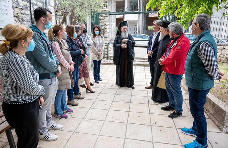 - Ο Σεβασμιώτατος, συνοδευόμενος από τον Αρχιερατικό Επίτροπο της περιοχής αρχιμ. Θεόκλητο Ράπτη, αρχικά επισκέφθηκε την Ιερά Μονή Τιμίου Πρόδρομου Αναλήψεως (Δερβεκίστης), όπου ξεναγήθηκε από την μοναχή Μαγδαληνή στους χώρους της Μονής και ενημερώθηκε για την ιστορία και την προσφορά της Μονής κατά το παρελθόν αλλά και σήμερα.