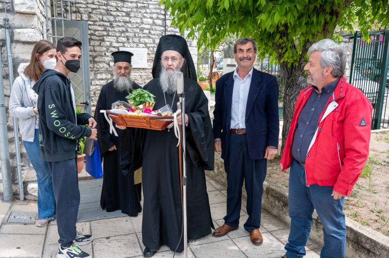Ο Σεβασμιώτατος ξεναγήθηκε στους χώρους του Σχολείου από τον Διευθυντή και τους καθηγητές και μίλησε στους μαθητές. Εξέφρασε τη χαρά του γιατί αποτελούσε επιθυμία του να επισκεφθεί το σχολείο που φοίτησε ο Γέροντάς του και αναφέρθηκε στον άγιο Κοσμά τον Αιτωλό και τον άγιο Καλλίνικο τον Αιτωλό.