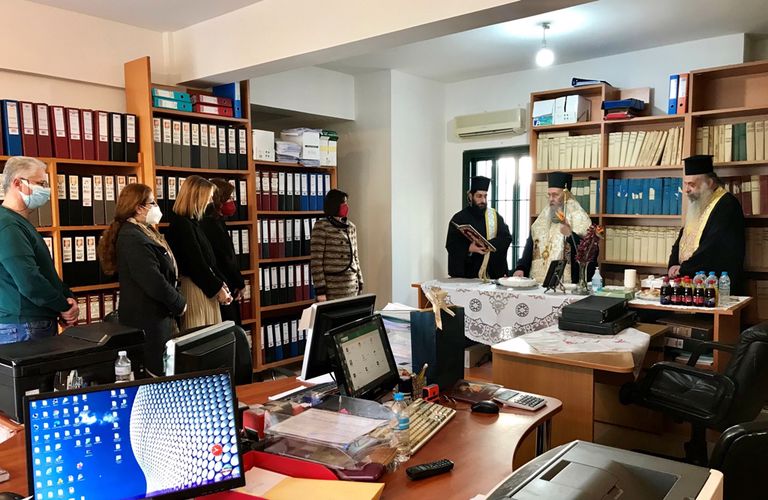 Ο Σεβασμιώτατος ευλόγησε τη βασιλόπιτα και ευχήθηκε για τη νέα χρονιά υγεία και δύναμη. Στην σύντομη προσφώνησή του αναφέρθηκε στο έργο που επιτελείται στο κτηματολογικό Γραφείο, στην προσφορά στο κοινωνικό σύνολο, και επεσήμανε την ανάγκη να εργαζόμαστε όλοι με έμπνευση και αγάπη σε όλους τους τομείς της ζωής μας.