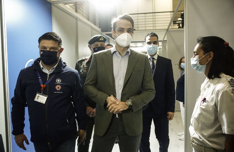 Ο κ. Μητσοτάκης επιθεώρησε το πρώτο από τα τέσσερα μεγάλα εμβολιαστικά κέντρα τα οποία έχουν οργανωθεί προκειμένου να αυξηθεί σημαντικά η καθημερινή δυνατότητα εμβολιασμών ενώ ευχαρίστησε τα στελέχη των Ενόπλων Δυνάμεων διότι -όπως είπε- έχουν στελεχώσει το κέντρο αυτό, το οποίο θα λειτουργεί σε πρώτη φάση από τις 8 μέχρι τις 8 με δυνατότητα διεύρυνσης ωραρίου σε ένα χώρο ασφαλή.