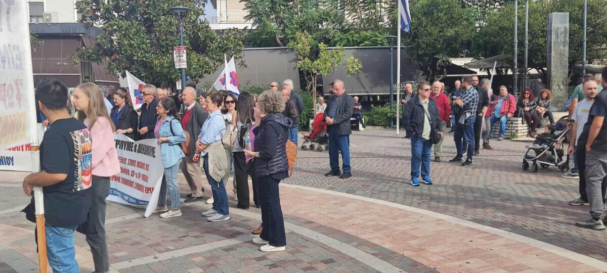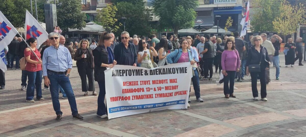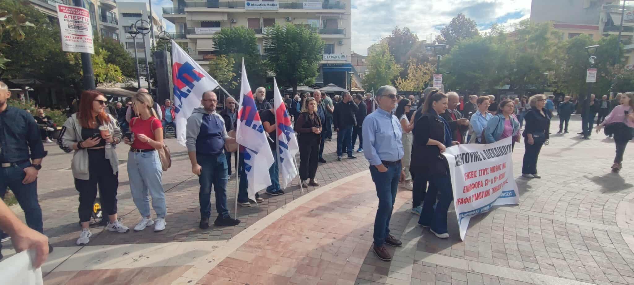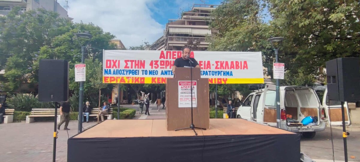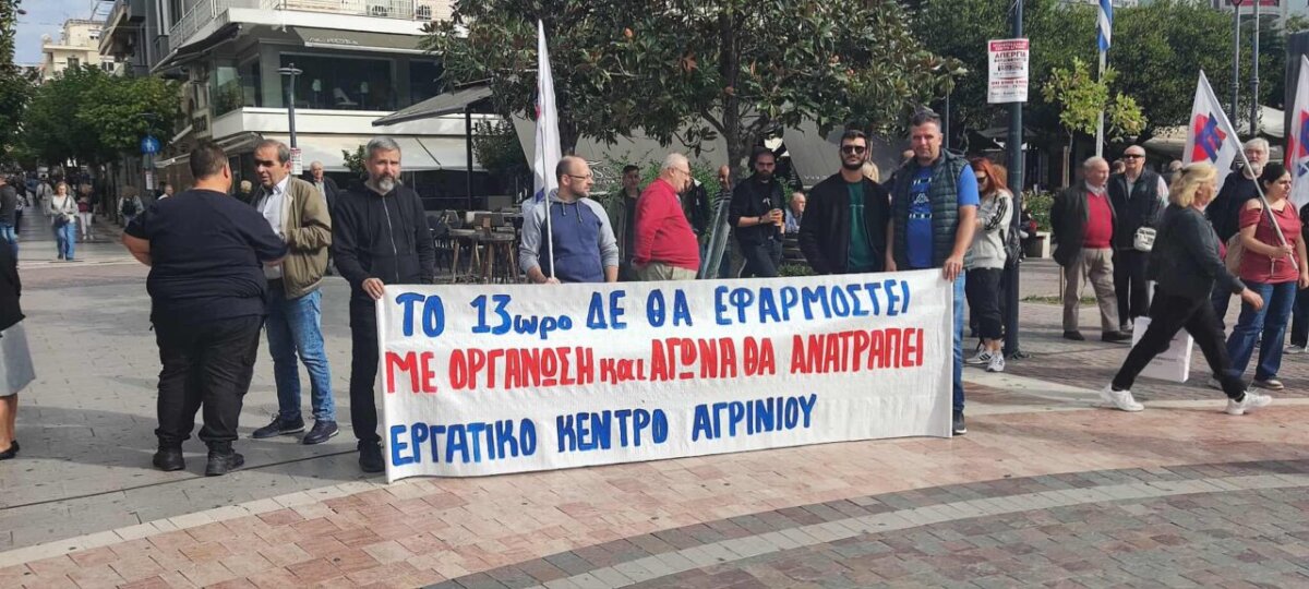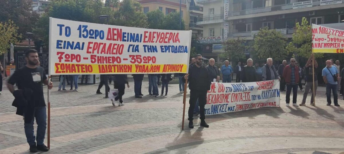 Μαζική απεργιακή συγκέντρωση πραγματοποιήθηκε το πρωί της Τρίτης (14/10) στην Πλατεία Δημοκρατίας στο Αγρίνιο, με αίτημα να μην περάσει το εργασιακό νομοσχέδιο που προβλέπει εργασία έως και 13 ώρες ημερησίως.