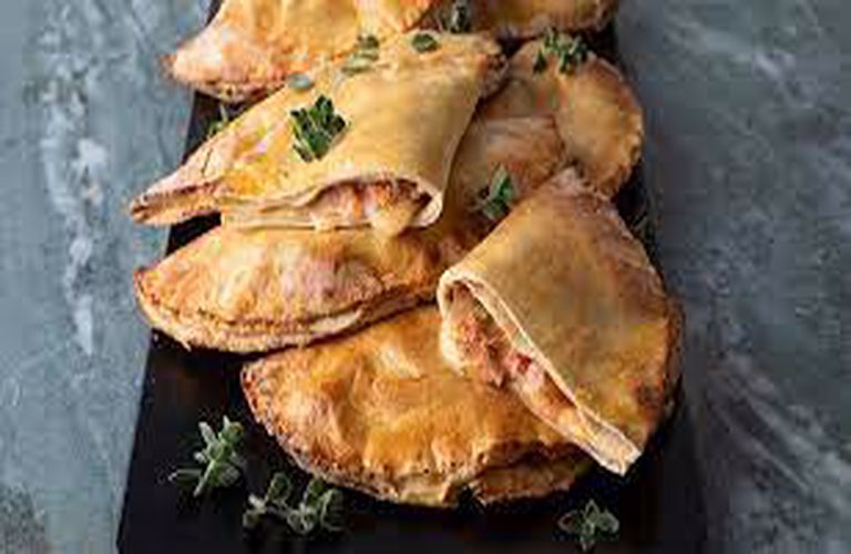 Με ένα πινέλο απλώνουμε νερό περιμετρικά στις πίτες και κλείνουμε στη μέση. Πιέζουμε για να κολλήσουν καλά. Συνεχίζουμε την ίδια διαδικασία για τα υπόλοιπα υλικά.