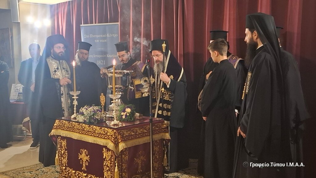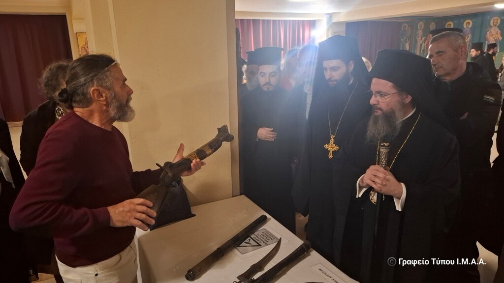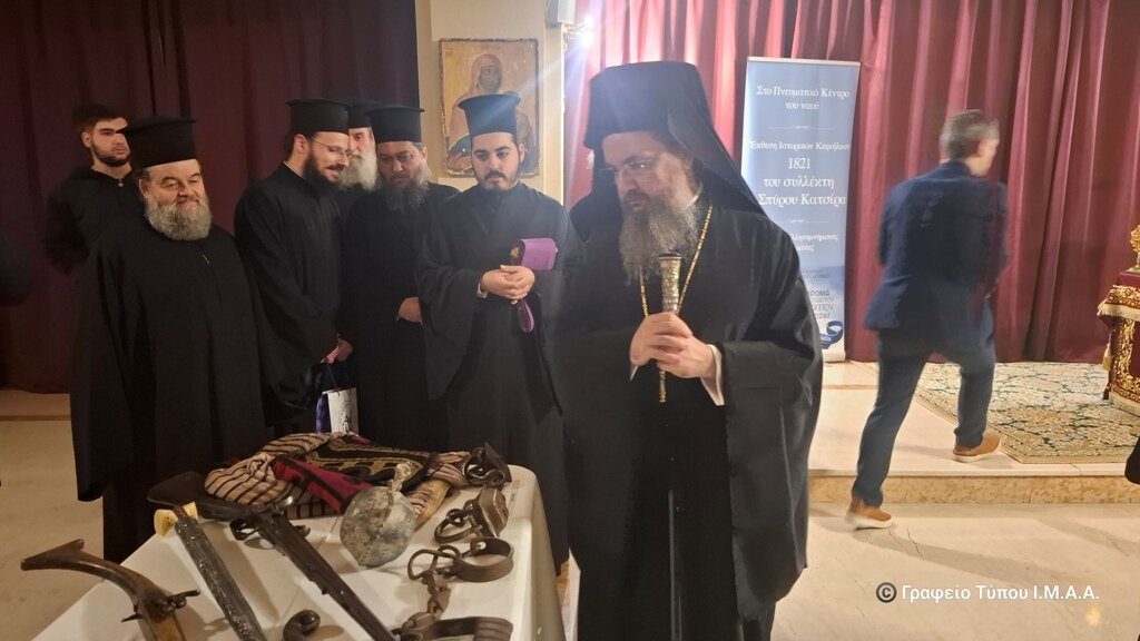 Τέλος, ο Πρόεδρος του Συλλόγου «Ελληνομνήμονες» Καλαμάτας, Συλλέκτης κος. Σπύρος Κατσίρας ευχαρίστησε για την φιλοξενία της εκθέσεως ιστορικών κειμηλίων, μίλησε για τα αντικείμενα που παρουσιάζονται και προχώρησε στην ξενάγηση του Μητροπολίτου Αιτωλίας και Ακαρνανίας και των παρισταμένων στα ιστορικά εκθέματα.
