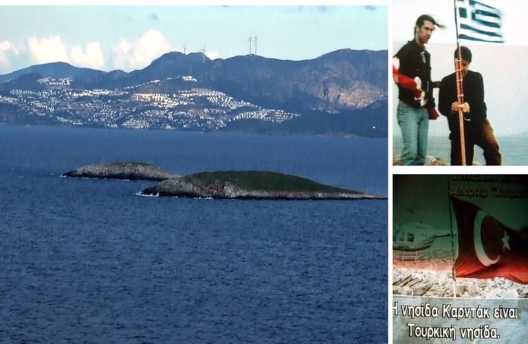 «Τότε, περί τις 02:30 το πρωί, μου τηλεφώνησε ο υπεύθυνος του γραφείου Τύπου από την πρεσβεία μας στην Άγκυρα και μου είπε ότι σε συνέντευξη Τύπου η Τανσού Τσιλέρ είχε ανακοινώσει ότι Τούρκοι κομάντος είχαν αποβιβαστεί και καταλάβει τη μία από τις δύο νησίδες και ότι είχαν ρητή διαταγή να μην πυροβολήσουν πρώτοι, ακόμα και αν οι Έλληνες προσπαθούσαν να αποβιβαστούν στην ίδια νησίδα. Τα τηλεφωνήματα αυτά γίνονταν είτε από το χολ του πολιτικού γραφείου είτε από ένα απομονωμένο τηλέφωνο που βρισκόταν σε μια γωνία. Όταν επέστρεψα στη σύσκεψη και μετέφερα την είδηση, επικράτησε, όπως ήταν φυσικό, πανικός. Ο πρωθυπουργός γύρισε προς τον αρχηγό Γενικού Επιτελείου ναύαρχο Λυμπέρη και χρησιμοποιώντας κατά τρόπο χαρακτηριστικό ένα βαρύτατο επίθετο του είπε: «[…] Καλά, δε σου είπα να φρουρηθούν οι δύο νησίδες;». Αποσβολωμένος και κατακόκκινος, ο Λυμπέρης ψέλλισε: «Δεν μου είπατε και οι δύο, κύριε πρωθυπουργέ. Στη μία υπάρχει φρουρά βατραχανθρώπων. Για την άλλη δεν είχαμε δυνάμεις».