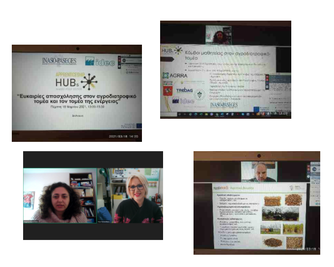 Με επιτυχία πραγματοποιήθηκε η ενημερωτική Ημερίδα που διοργάνωσε το ΙΝ.Α.Σ.Ο. – ΠΑΣΕΓΕΣ και η IDEC ΑΕ, την Πέμπτη 18 Μαρτίου 2021 στα πλαίσιο του Ευρωπαϊκού Έργου Apprenticeship HUB’s με τίτλο «Ευκαιρίες απασχόλησης στον αγρο-διατροφικό τομέα και τον τομέα της Ενέργειας».