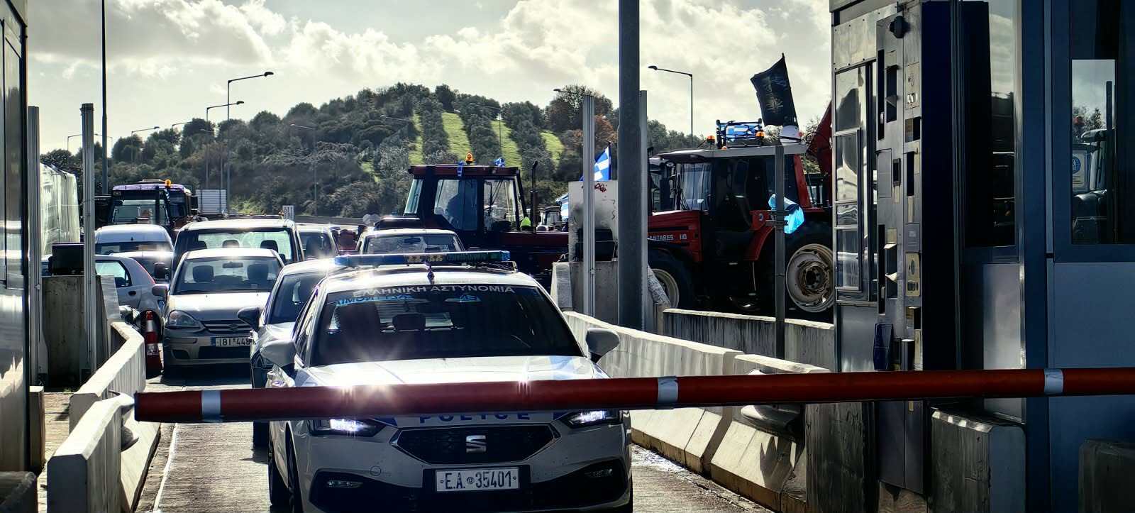 Στο σημείο δεν υπήρχε ισχυρή αστυνομική δύναμη αλλά ένα περιπολικό, όπως φαίνεται και στο φωτογραφικό υλικό από την περιοχή του μπλόκου.
