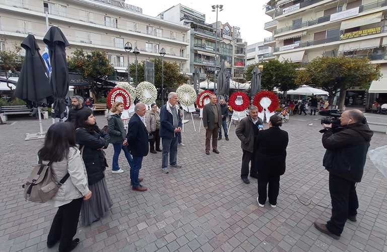 Την κατάθεση στο Μνημείο των «120» έκανε ο Θύμιος Τόλης, στέλεχος του ΚΚΕ και μέλος του ΔΣ του παραρτήματος Αγρινίου της ΠΕΑΕΑ-ΔΣΕ.