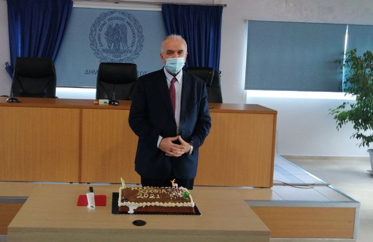 - Τις ευχές του για μια χρονιά με υγεία, δύναμη και δημιουργικότητα μετέφερε σήμερα ο Δήμαρχος Ιερής Πόλης Μεσολογγίου Κώστας Λύρος προς τους εργαζομένους, κατά την διάρκεια κοπής της πρωτοχρονιάτικης πίτας του Δήμου. Λόγω των συνθηκών, στην αίθουσα παρευρέθηκαν μόνο διευθυντές και προϊστάμενοι υπηρεσιών.